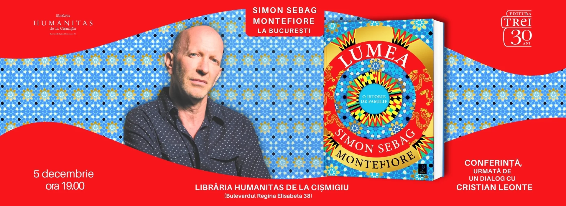 Celebrul autor britanic Simon Sebag Montefiore va fi prezent în România pentru a-și lansa cea mai nouă lucrare, „Lumea. O istorie de familie”, un proiect monumental care explorează istoria lumii prin prisma poveștilor de familie. Evenimentul este organizat de Editura Trei și include două întâlniri cu cititorii: la Librăria Humanitas Cișmigiu pe 5 decembrie, ora 19:00, într-un dialog cu jurnalistul Cristian Leonte, și la Târgul de carte Gaudeamus pe 6 decembrie, ora 12:00, unde autorul va oferi autografe.